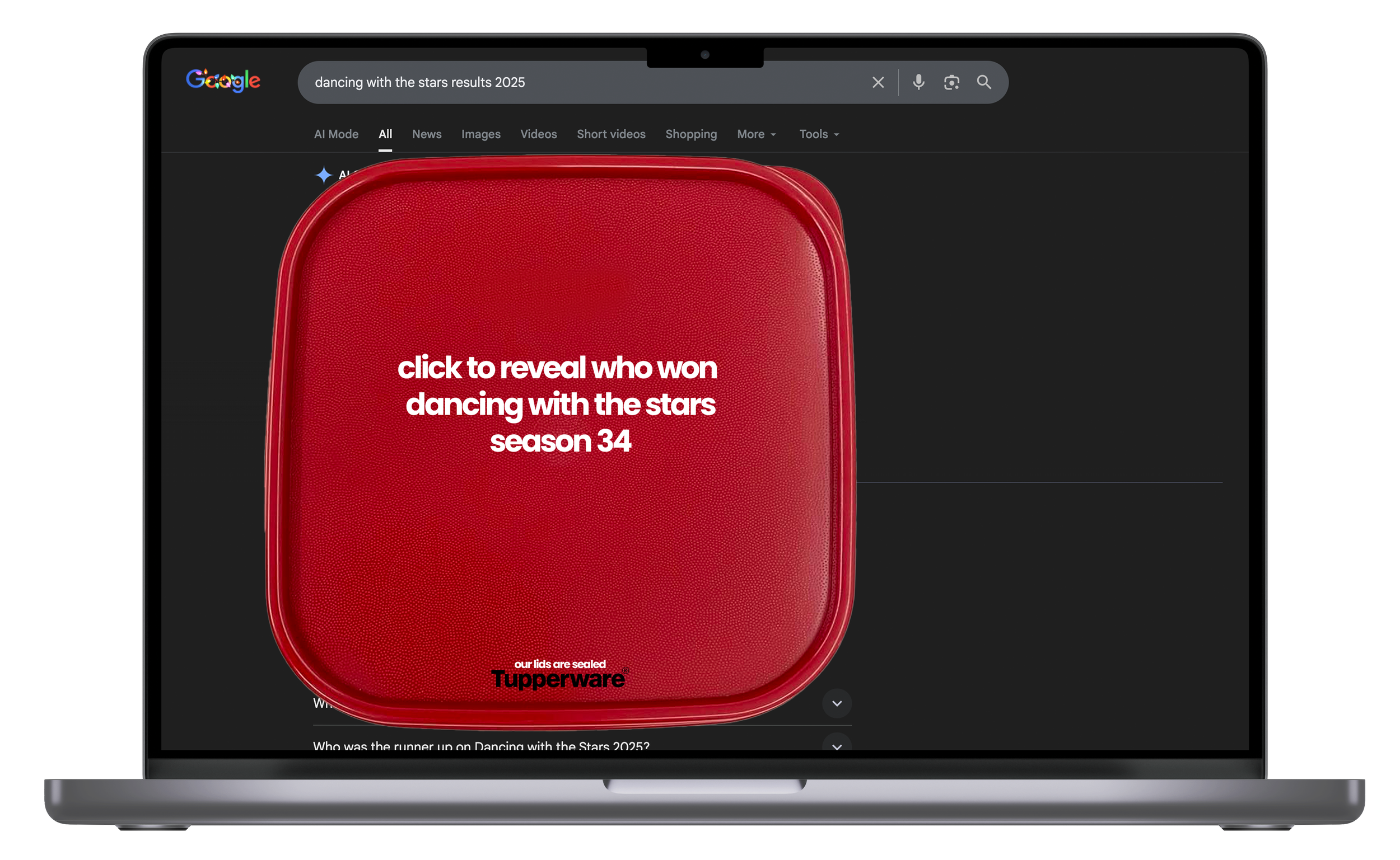 Tupperware’s social posts will act as a digital trap for the chronically curious. Each post invites users to click for something they absolutely shouldn’t have access to: the winning Powerball numbers, a leaked celebrity group chat, a season finale spoiler. But when they take the bait, they’re reminded of our promise to never spill anything.