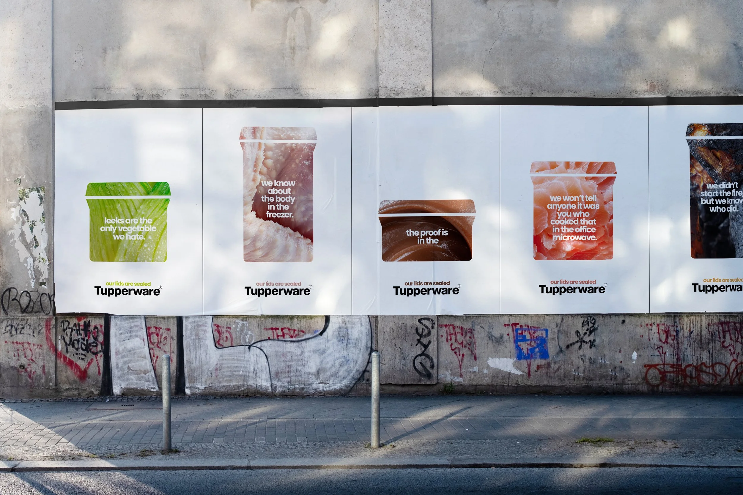 Cleverly placed OOH ads that use perspective to fill in the Tupperware cutouts and call out passers-by for being somewhere they shouldn’t be.
